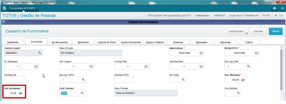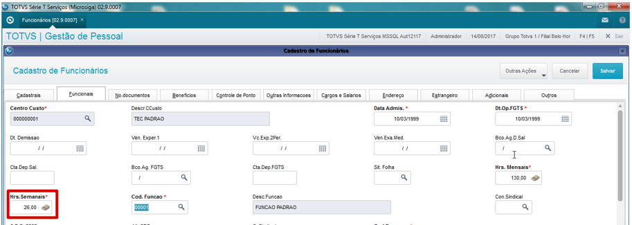 Não terá impacto. Deverá lançar no cadastro do funcionário 130/150 horas mensais para o sistema gerar automaticamente a informação de 26/30 horas semanais no campo correspondente.
