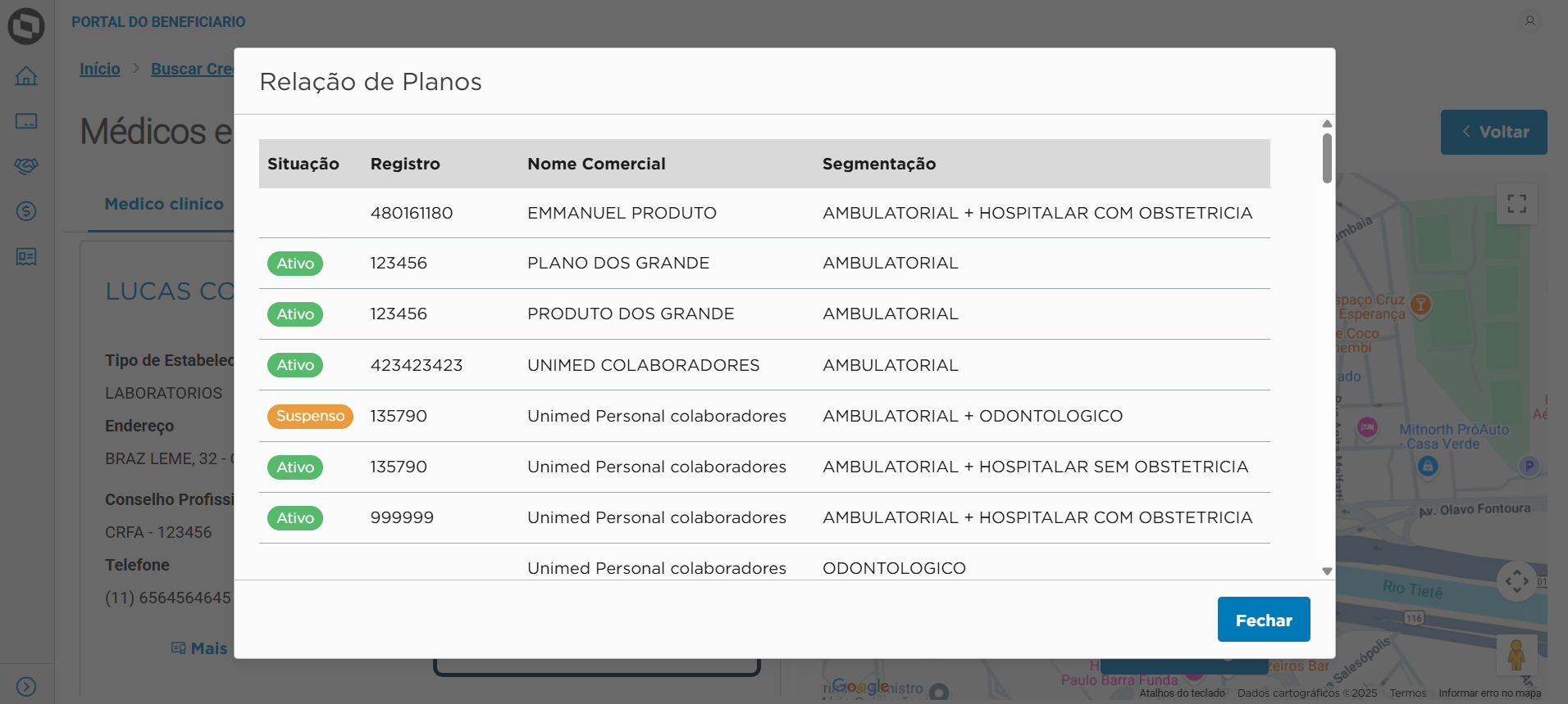 | Visualizar no mapa | Exibe a localização do credenciado em um mapa integrado. |