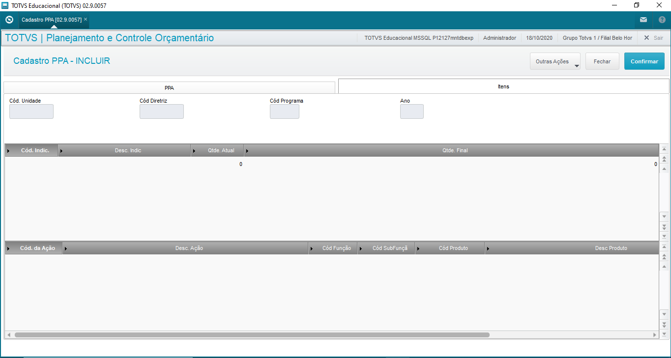 | AK0_DESCRI | Descrição | Informe a Descrição do PPA. |