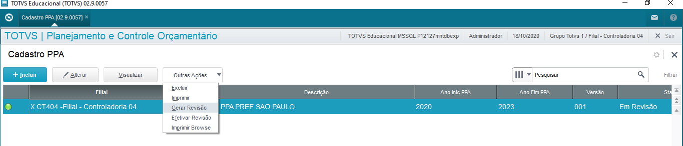 No Browser do Cadastro de PPA