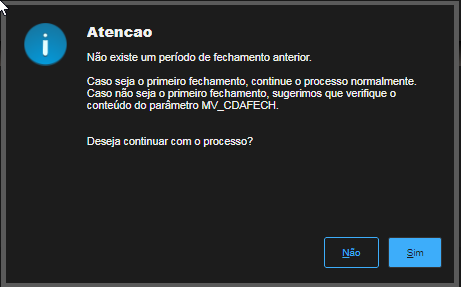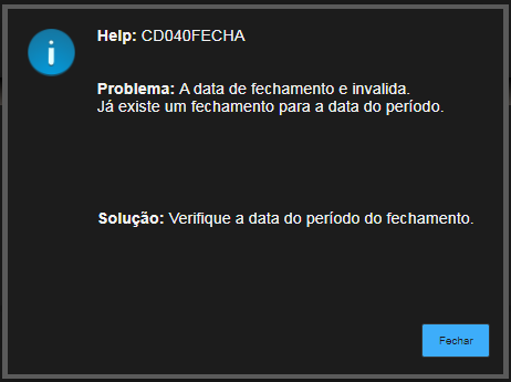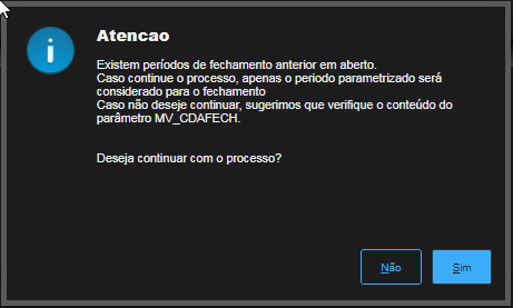 Ao confirmar os dados para o fechamento, poderão ser apresentadas as seguintes mensagens: