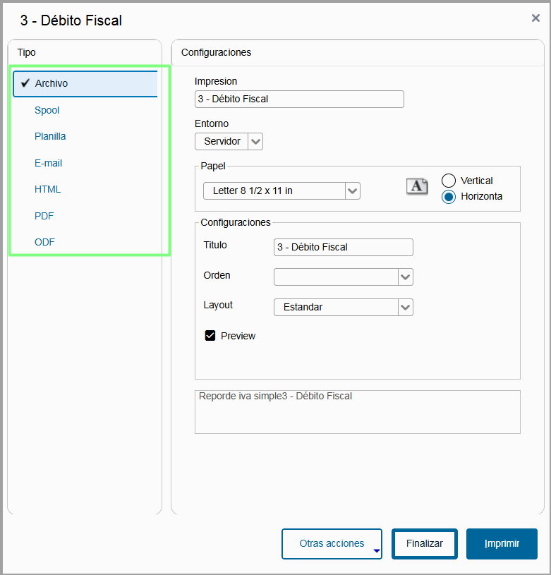- Seleccionar el "Tipo de Archivo a generar". Dependiendo de la opción seleccionada verificar el resultado esperado en la pestaña correspondiente.