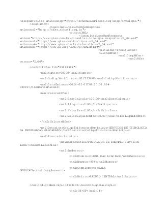 Exemplo de Processamento (Versão 2.04): Abaixo, demonstramos um exemplo de envio utilizando a versão 2.04 e o respectivo retorno com a autorização da nota: