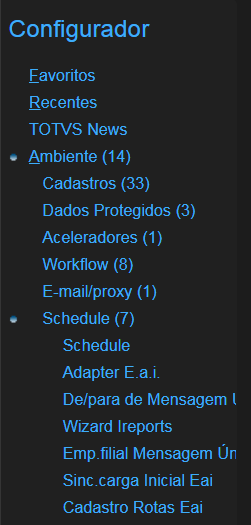 Em seguida será necessário configurar o Schedule por meio do SIGACFG. Para isso, pode ser seguido os passos a seguir: