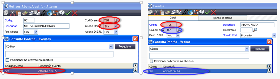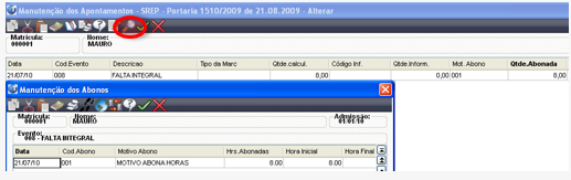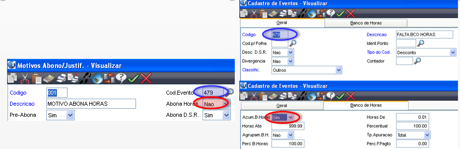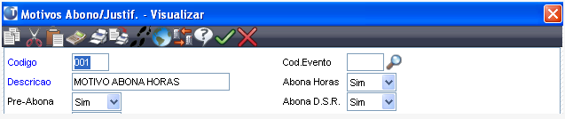 Passo a passo: | A princípio, qualquer evento apontado poderá ser abonado, inclusive horas extras. No cadastro corrente, os motivos de abono e justificativas são definidos para faltas, atrasos, saídas antecipadas, entre outros. O sistema permite que as horas dos eventos sejam ou não abonadas e se as horas serão consideradas no cálculo do desconto de DSR - Descanso Semanal Remunerado.