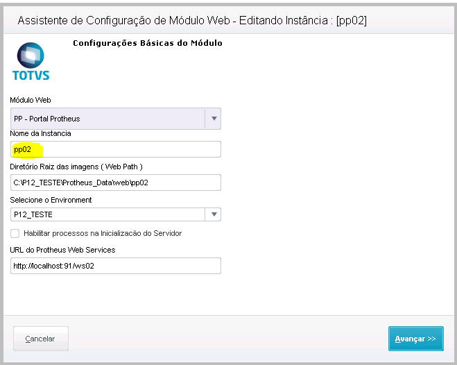 Finalizar e confirmar a configuração. B - Configurar PP Portal Protheus