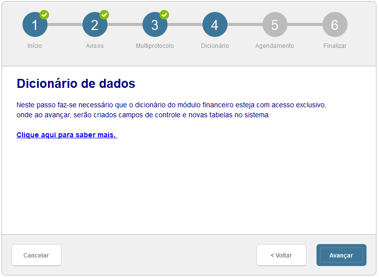 Wizard para configuração de Job e validação do dicionário para utilização do Novo Gestor Financeiro.