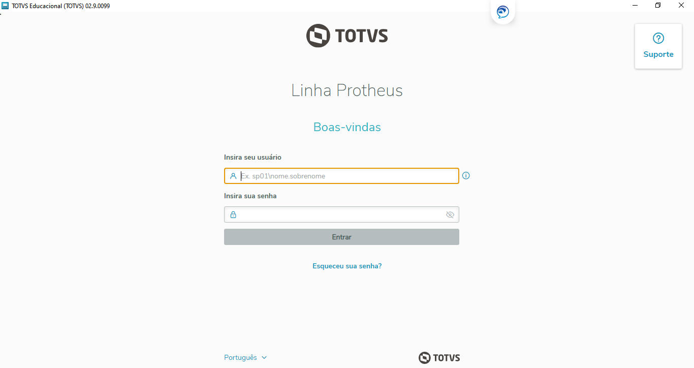 Com a Porta Multiprotocolo configurada, a tela de login do Protheus deve ficar diferente: