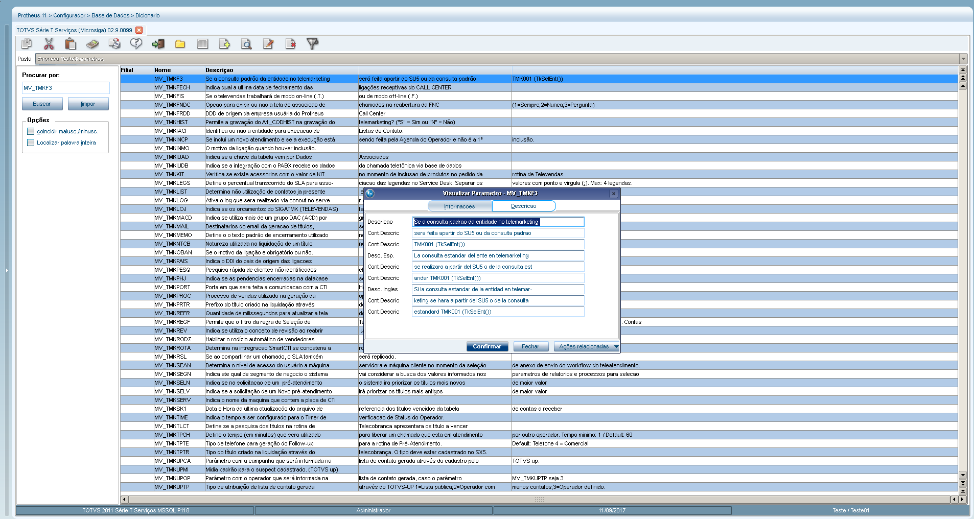 Passo a passo: | Para efetuar tal mudança basta alterar o parâmetro MV_TMKF3 de .F. para .T. caso queria que o sistema traga a SU5 em vez da consulta padrão do telemarketing. Ou o inverso. - Tela com a descrição do Parâmetro. - Visão da consulta padrão do telemarketing MV_TMKF3 = .F. - Tela do Telemarketing com o parâmetro MV_TMKF3 = .T. |