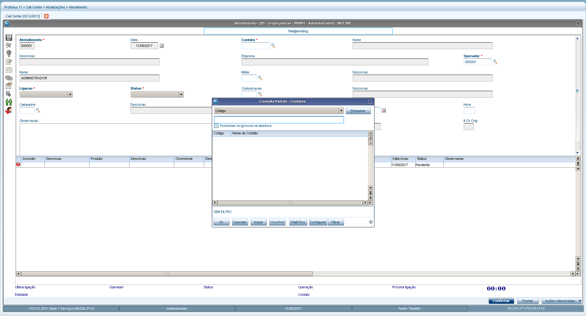 Ocorrência: | Como faço para trazer na consulta padrão do campo contato a SU5 em vez de trazer a consulta padrão do call center dentro da rotina de Telemarketing? |