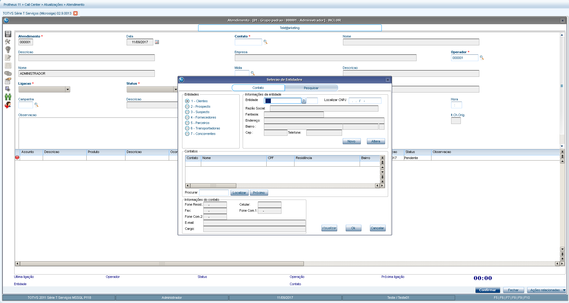 Pode lhe interessar: | Na Grid de Contatos é possível fazer a inclusão de novos cadastros SU5, entretanto nesta sessão são apresentados apenas os campos presentes no folder 1 (Cadastrais) desta tabela, ou seja, caso haja necessidade de incluir outros campos da tabela SU5 nesta grid é necessário movê-los para o folder cadastrais. Obs: Os campos U5_STATUS, U5_TIPO e U5_ATIVO independente de estarem no folder 1 não são apresentados na grid de contatos. Esses campos são vinculados ao status/função destes contatos e não devem ser manipulados em meio a realização do atendimento, correndo risco de gerar uma inconsistência na base, como a carga dos campos é feita em modo de alteração (para registros existentes) os apresentados podem ser manipulados, por esta razão estes três são bloqueados na montagem da tela. |