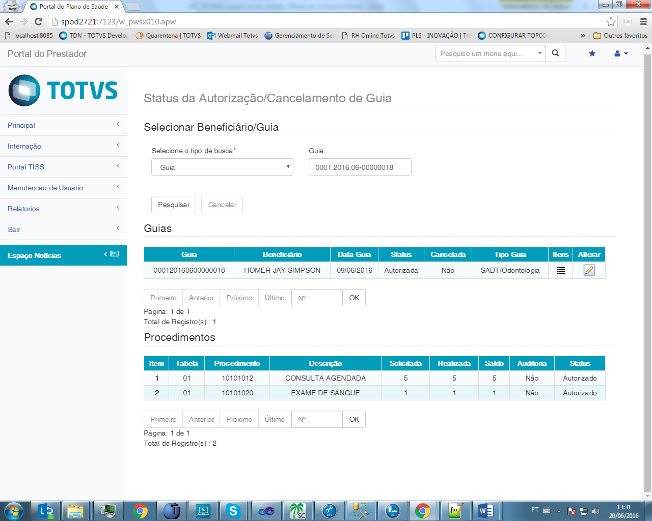 - Alteração de guias autorizadas através do atendimento através da nova tela "Consulta - Status Autorização"