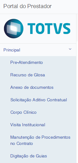 - No Portal do Prestador, acesse o menu Principal / Digitação de Guias: