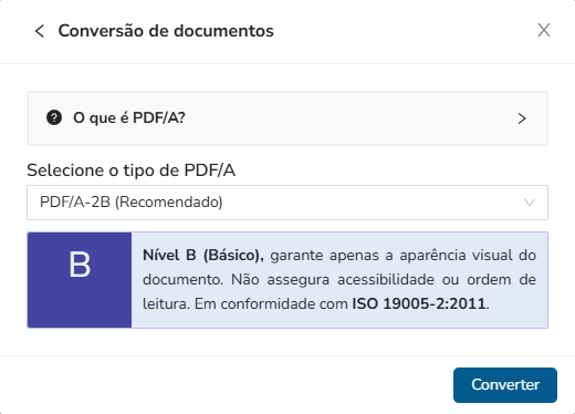 Clique na seta ao lado de Baixar documento e selecione a opção que deseja realizar o download.