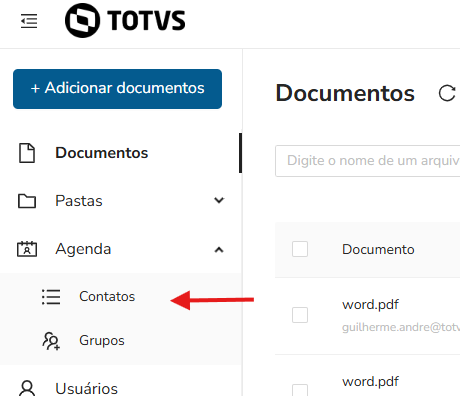 Ao clicar em qualquer um desses botões, será exibida a respectiva lista de documentos. Para abrir um documento pasta clicar em seu nome.
