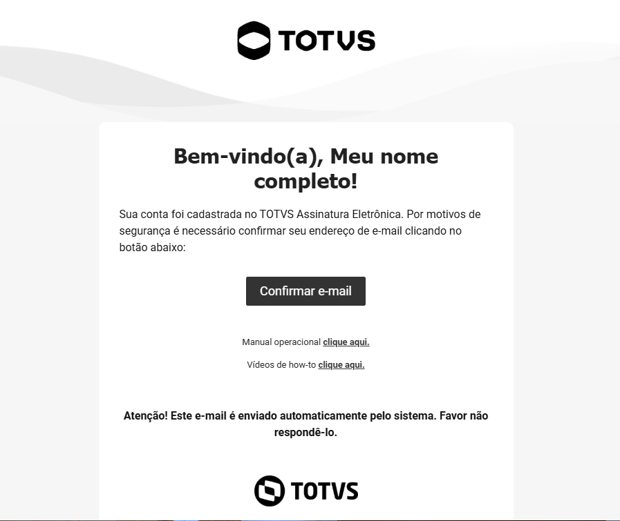 Um e-mail será enviado para a sua caixa de entrada (verifique também na caixa de spam caso não encontre o documento) e você deverá seguir as instruções do e-mail para confirmar seu cadastro.