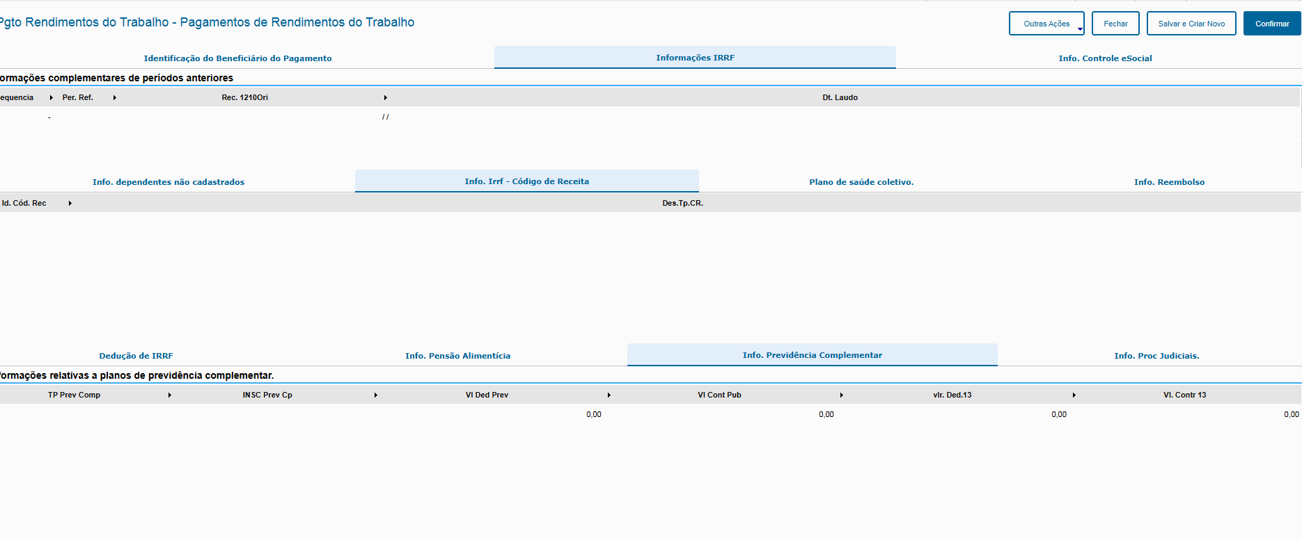 | T6R | Informações complementares relacionadas ao pagamento parcial | detPgtoBenPr | infoPgtoParc |