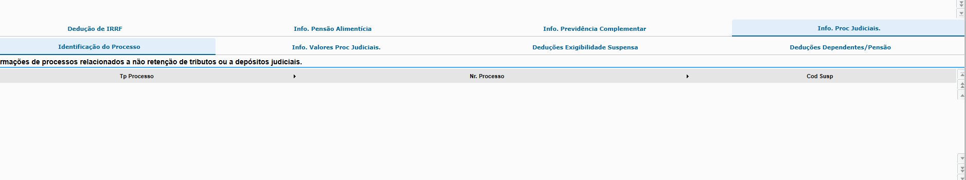 Para o eventos S-1200 foi criado um browser customizado onde algumas das opções necessárias para o desempenho das atividades foram alocadas em uma barra lateral do lado direito do browser. São Elas: