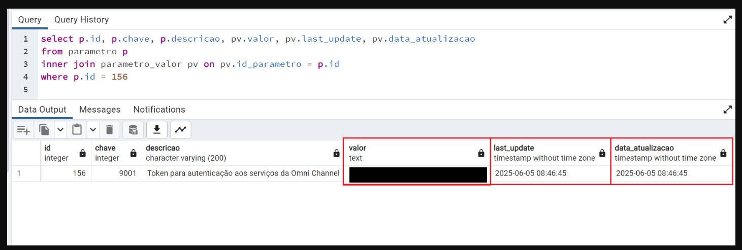 Para solucionar este problema foi criado o parâmetro 9437 - Token para autenticação aos serviços da Omni Channel que fica disponível para manutenção através da tela de Configuração de Parâmetros que pode ser acessada pelo menu Global > Cadastros > Parâmetros do Sistema (Rede/Central/Un. Negócio).