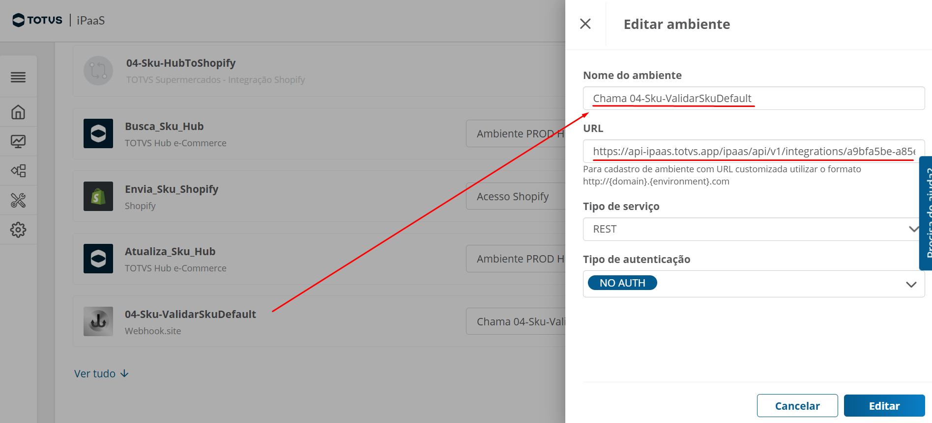 O aplicativo Webhook.site utilizado para que um determinado diagrama possa executar um segundo diagrama automaticamente. Para isso precisamos configurar a URL do diagrama a ser chamado. Este processo atualmente precisa ser feito de forma manual até que o iPaaS libere as issues FINT-7354 e FINT-7353 com recursos para melhorar a forma de configurá-lo.