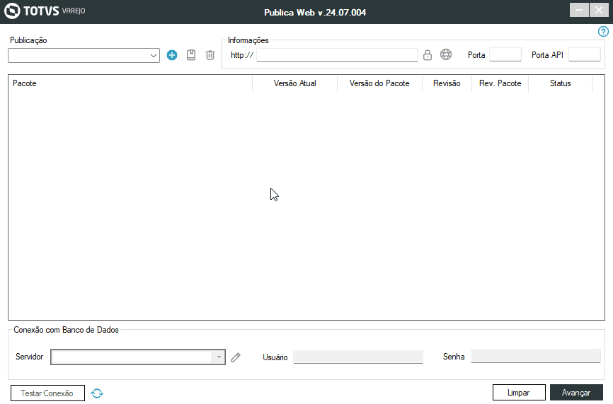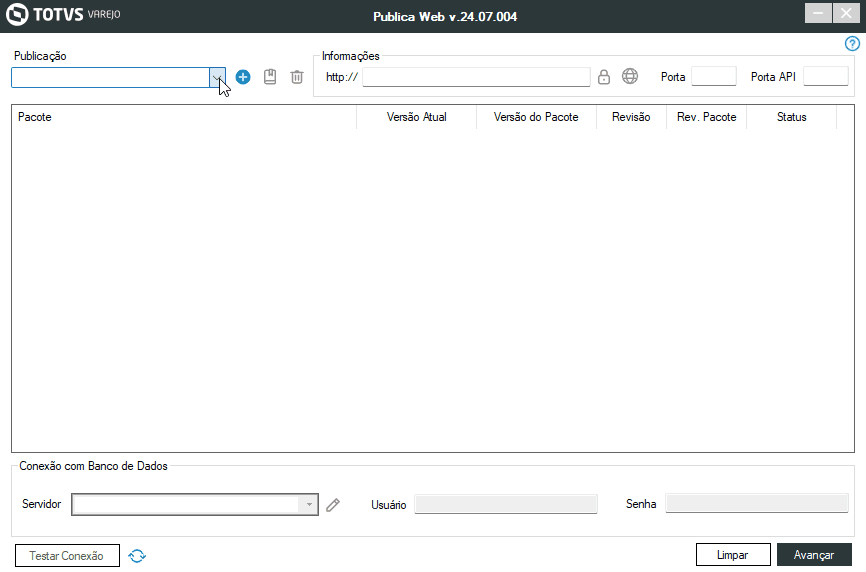 Com o pacote em mãos abra o Publica Web selecionando a Publicação como Conector IFood.