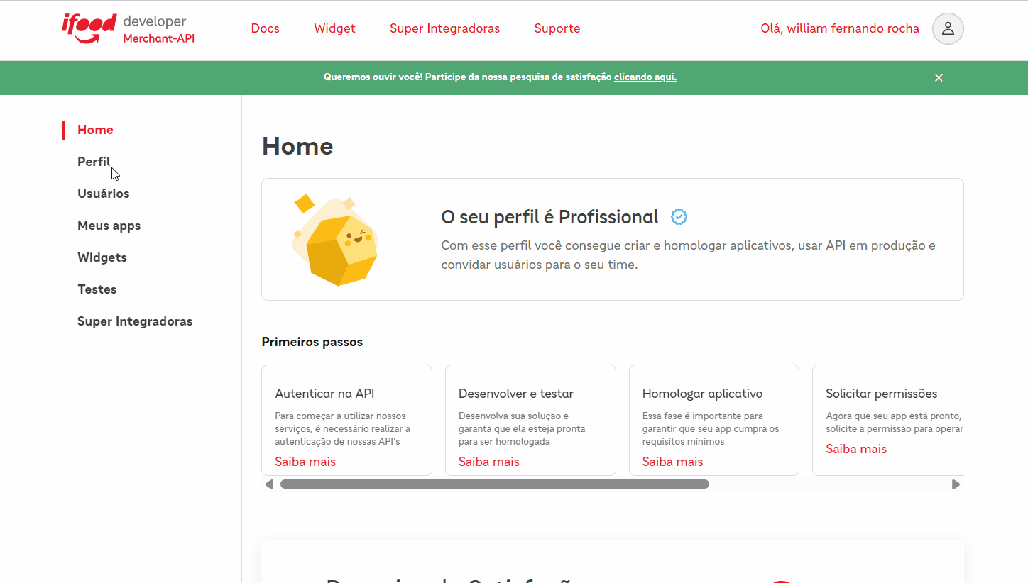 Cadastrando aplicativo na plataforma do iFood
