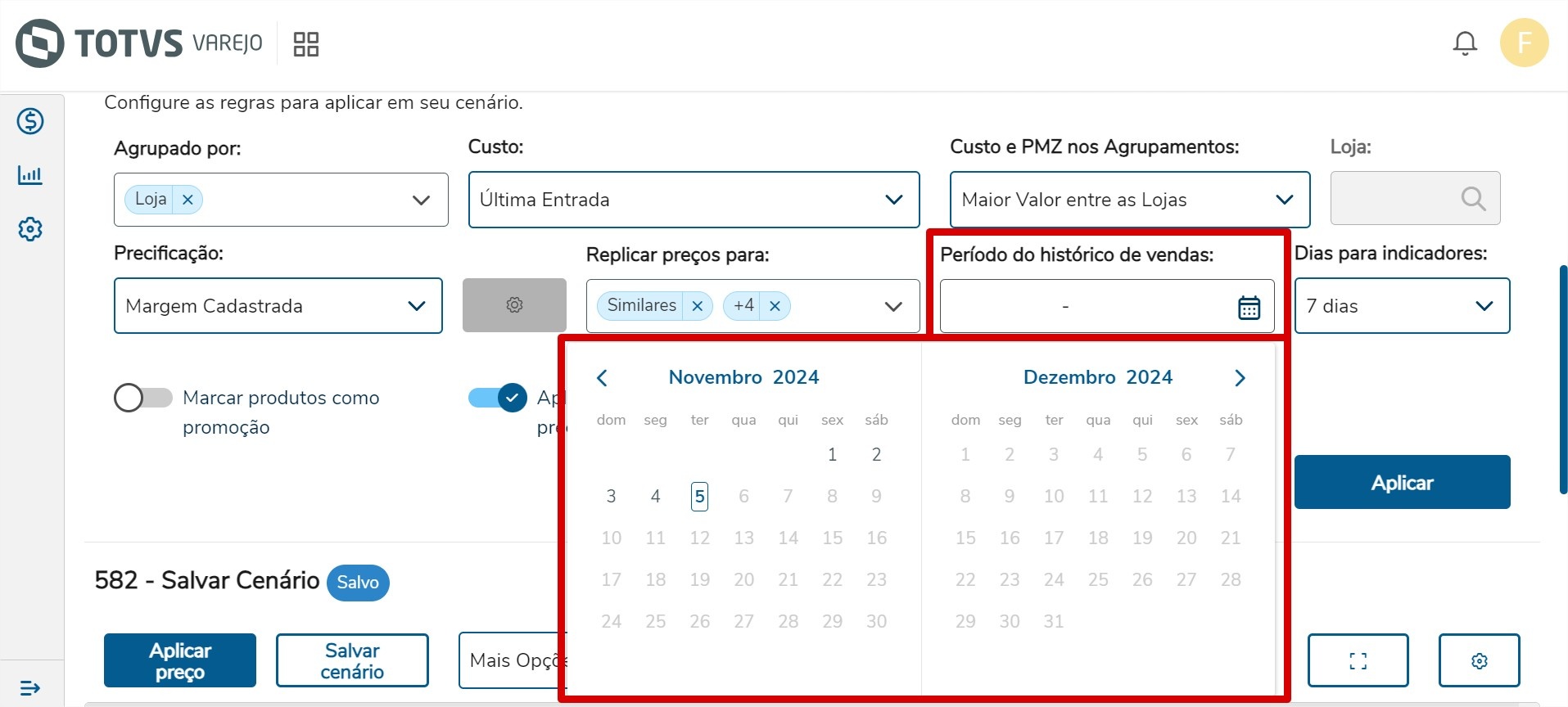 | Aplicar Cenário | Enviar os preços definidos ao ERP |