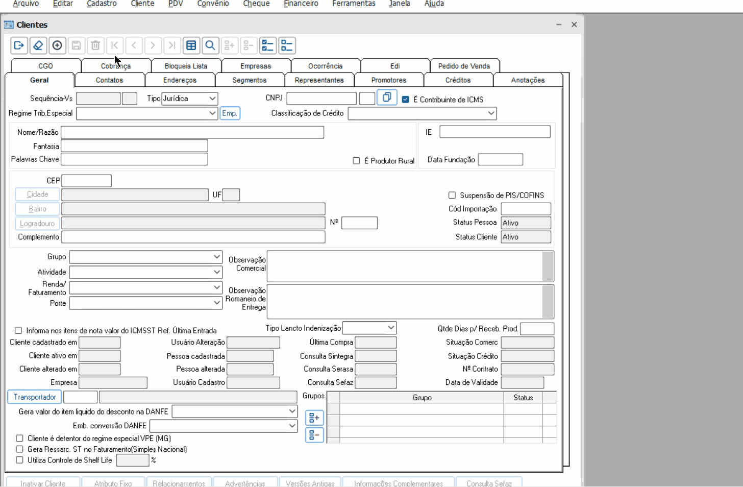 Clique aqui para mais informações sobre Clientes - DEA0001.