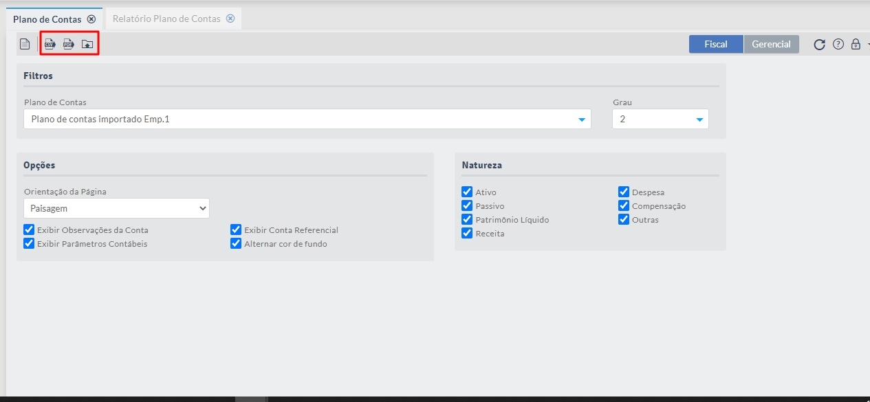 Plano de contas: Selecione o plano de contas que deseja visualizar.