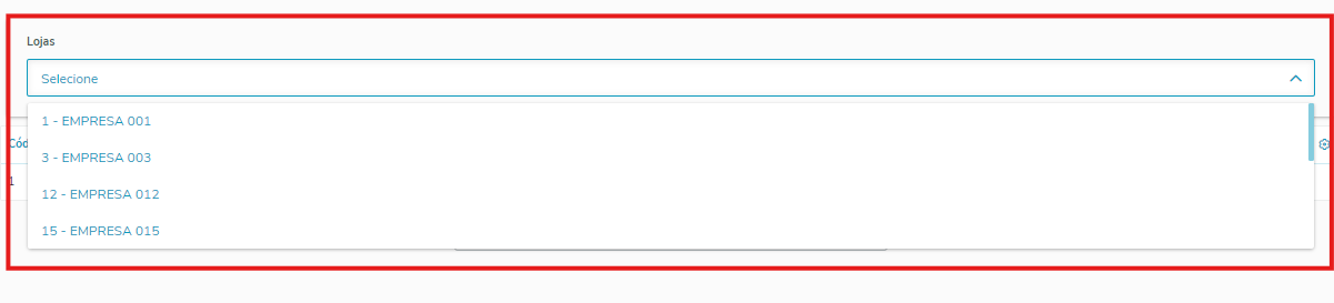 Assim que selecionado a loja que gostaria de realizar a consulta, ao clicar na loja desejada, automaticamente a pesquisa será feita e os campos vão ser filtrados de acordo com o seu parâmetro.