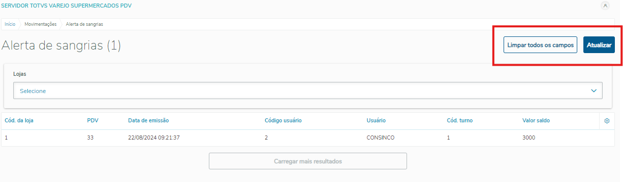 Para fazer a consulta dos alerta de sangrias para as lojas é bem simples.