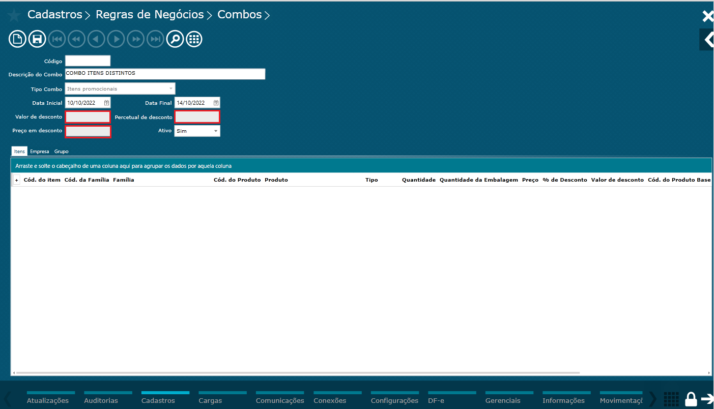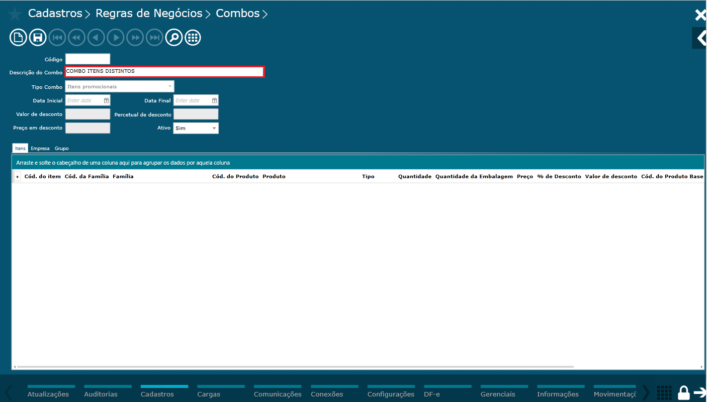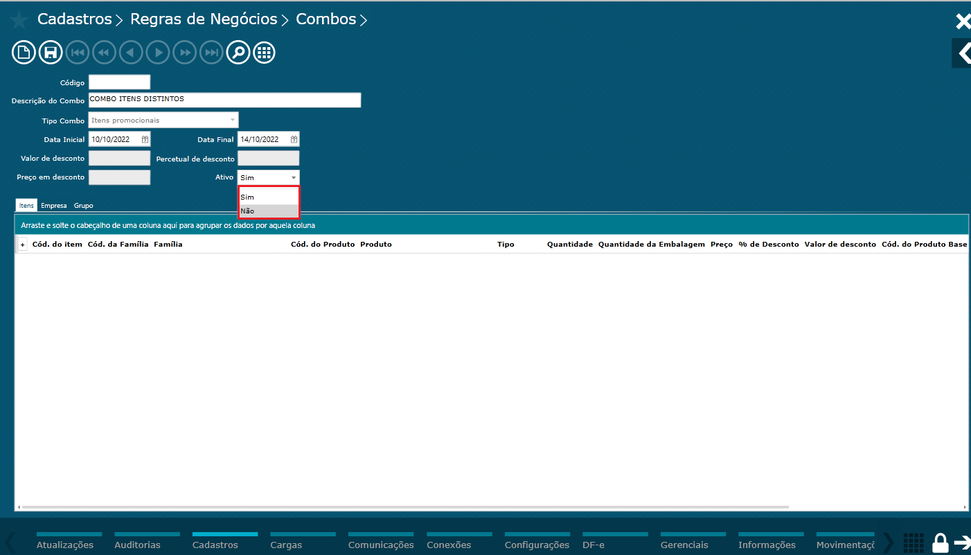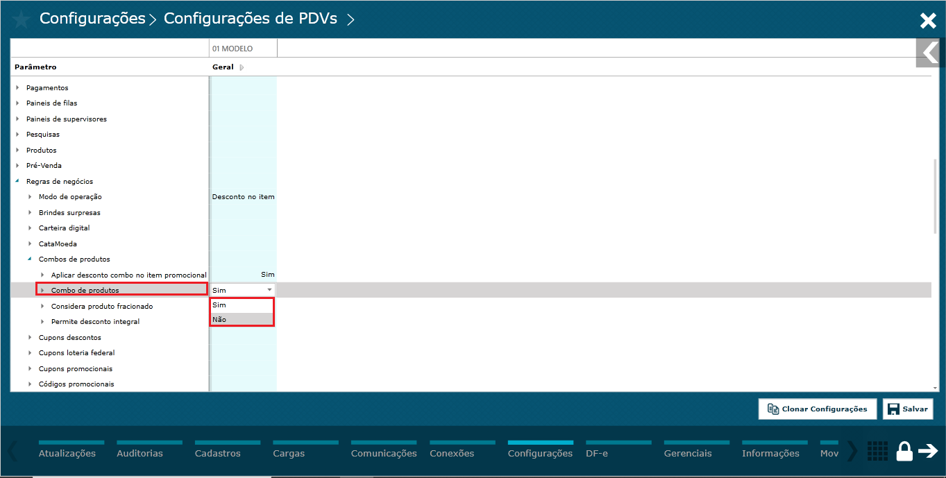Dica: Após criar a regra de combo é necessário parametrizar os PDVs para trabalharem com Combo.