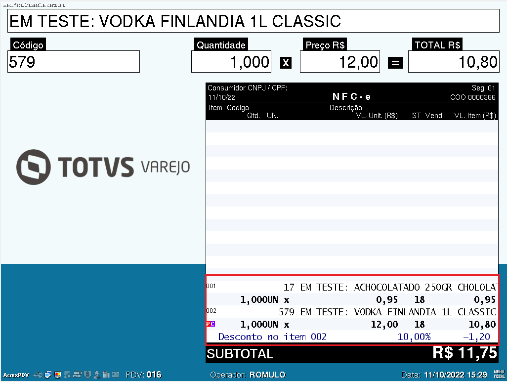 Dica: Confira no exemplo abaixo que foi vendido 3 itens conforme definido no grupo e o 3º item recebeu o desconto que foi definido;
