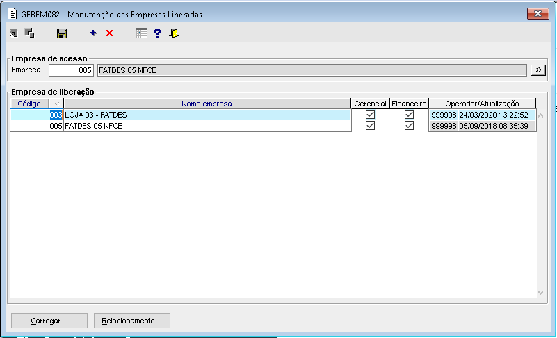 Imagem 01 - Empresas liberadas no GERFM082.