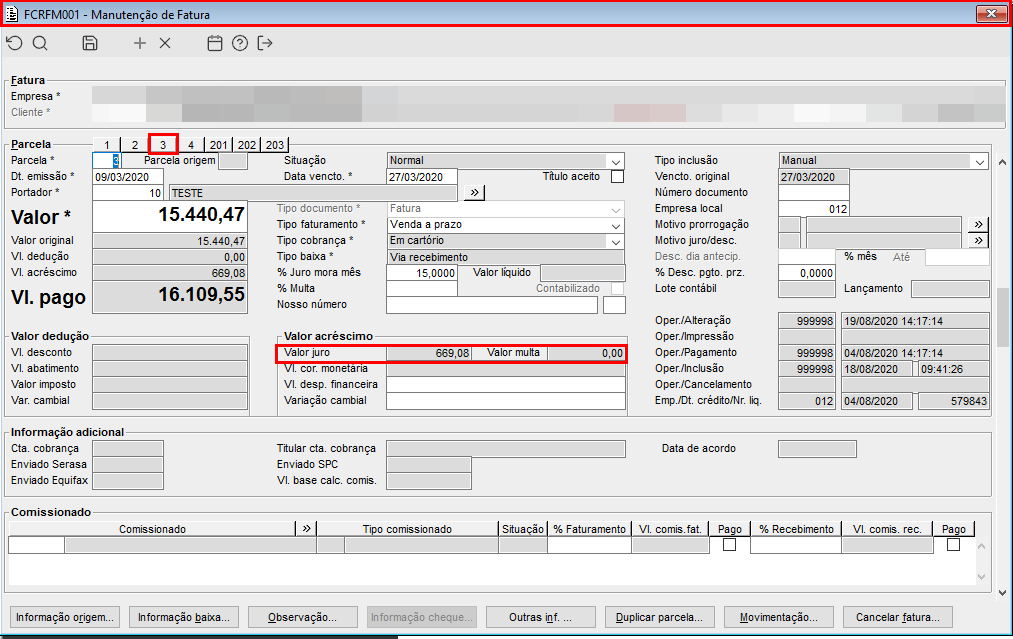Imagem 01 - FCRFM001 - Demonstração da fatura após a alteração.