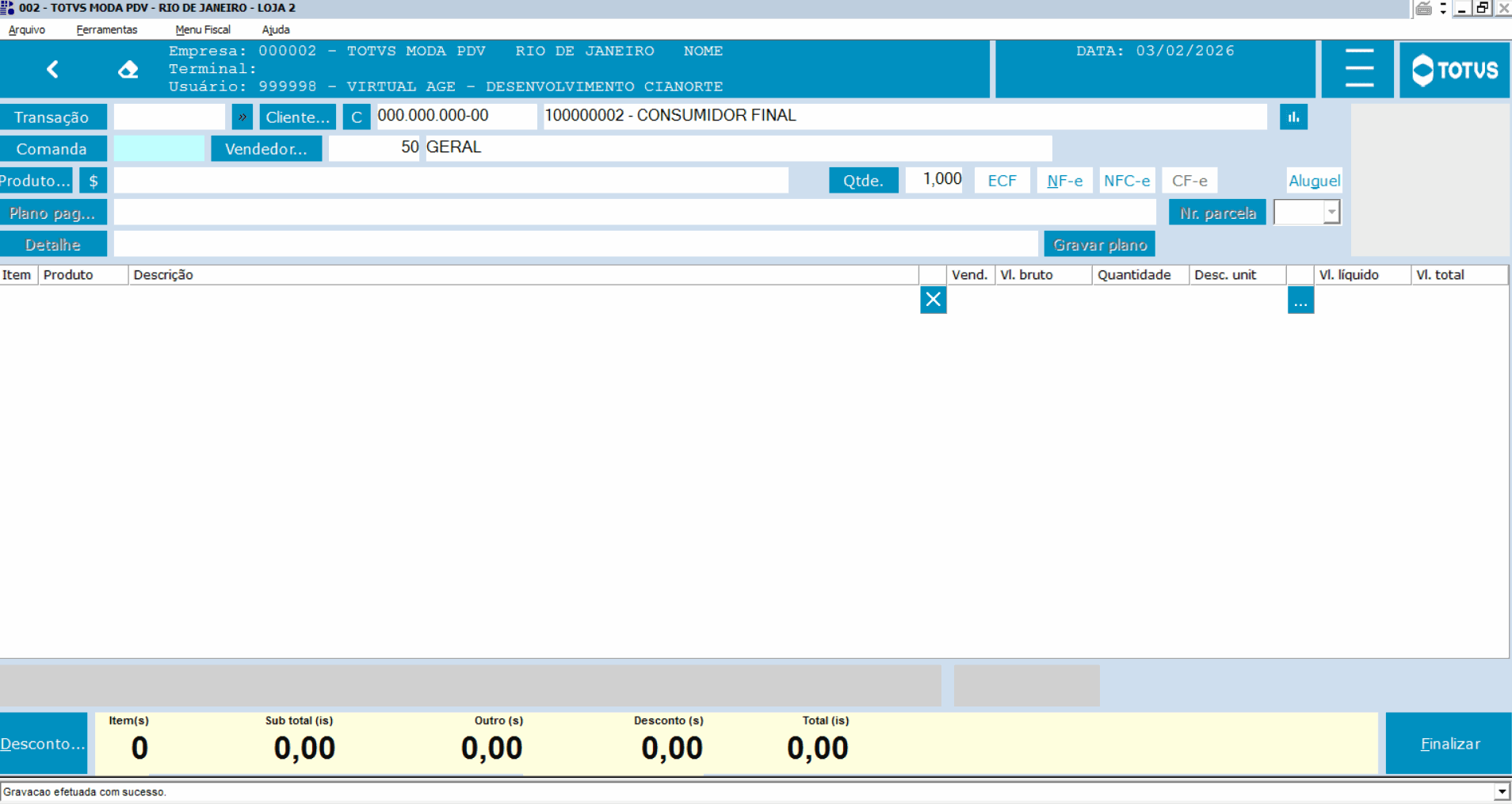 | Função: | Data do sistema fixa no PDVFL016 quando chamado pelo PDVFM001 |
