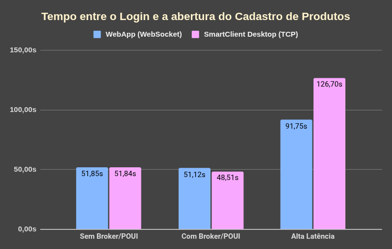 Comparativo entre o WebApp com WebSocket e o SmartClient Desktop com TCP.