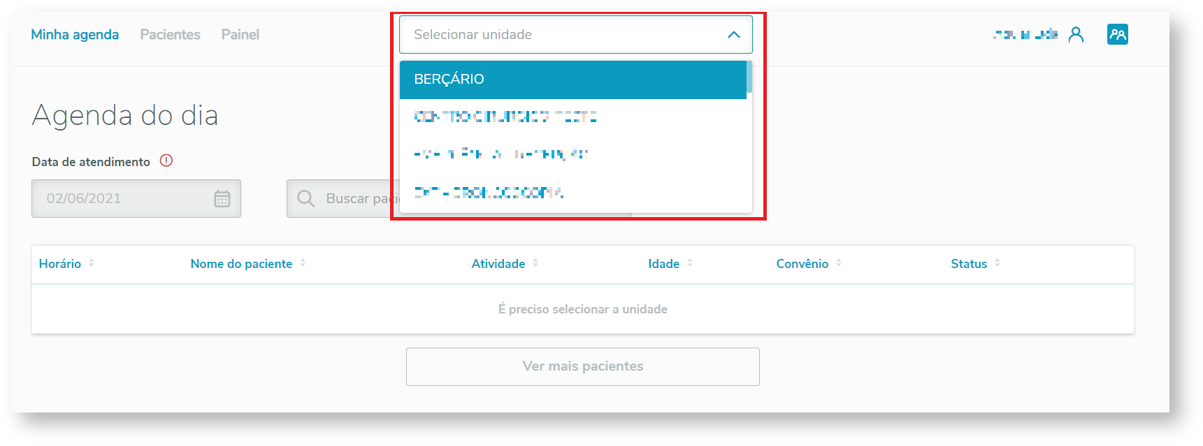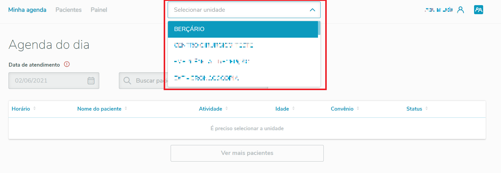 Após a seleção da unidade, escolha o dia a ser verificado (por padrão é sempre o dia atual).