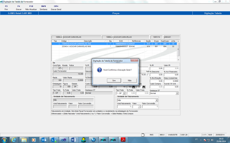 Execute a Função F4 Gravar caso seja selecionado um produto de cada vez, ou a Função CtF4 Gravar Geral se desejar gravar as alterações para todos os produtos de uma só vez.