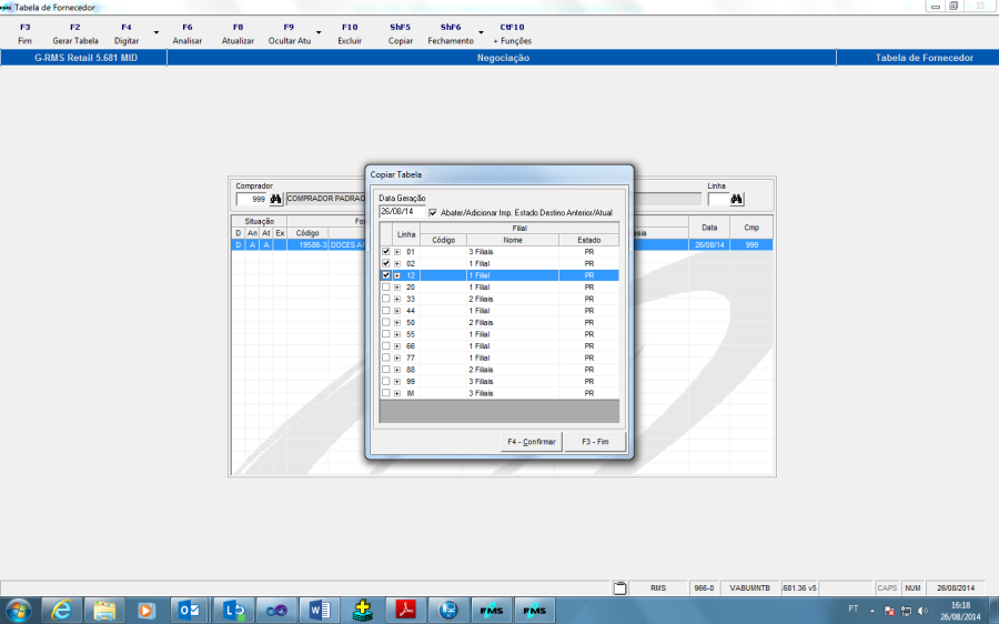 Para realizar a Replicação da Tabela de Fornecedores replicação selecione o fornecedor que deverá ser duplicado e digite <ShftF5 Copiar>.