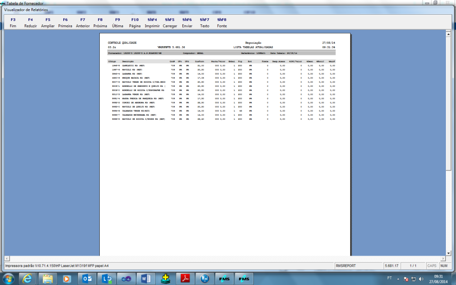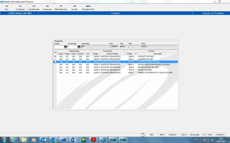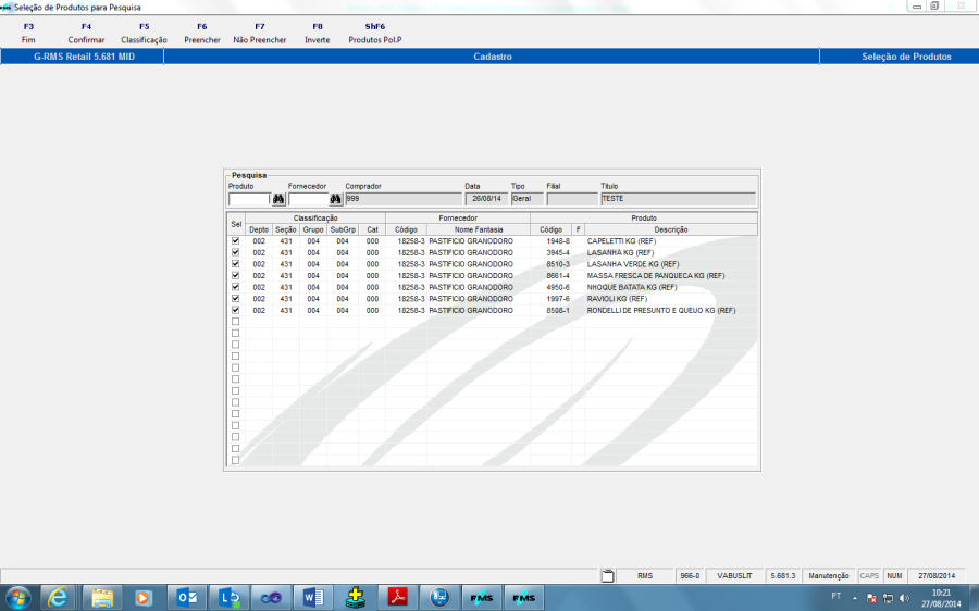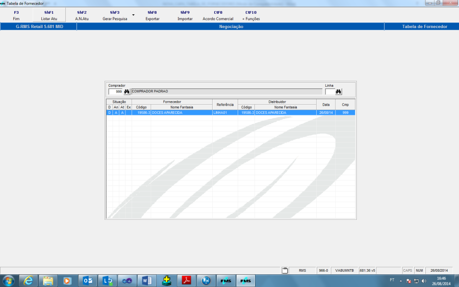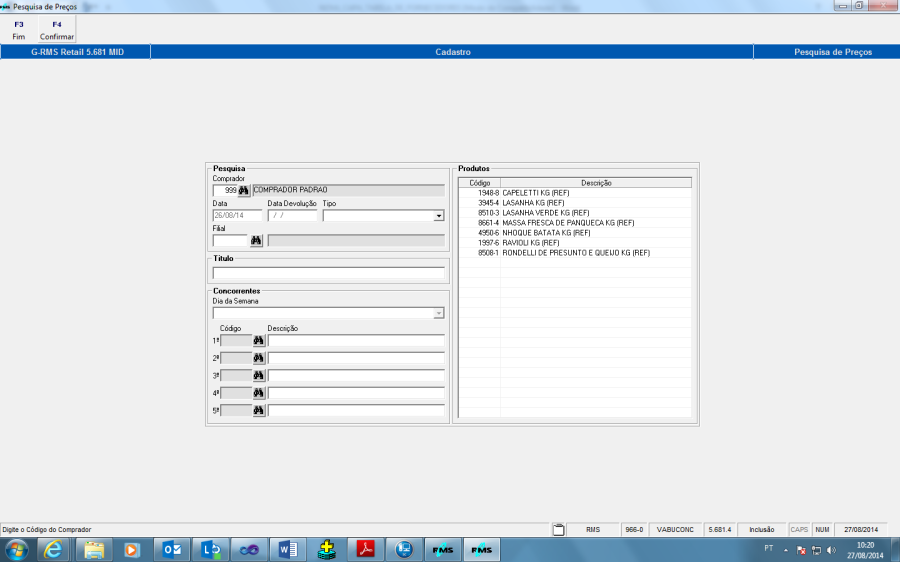 O programa abre a tela do programa de Cadastro de Pesquisa de Preço, para os produtos relacionados na tabela de fornecedores selecionada.