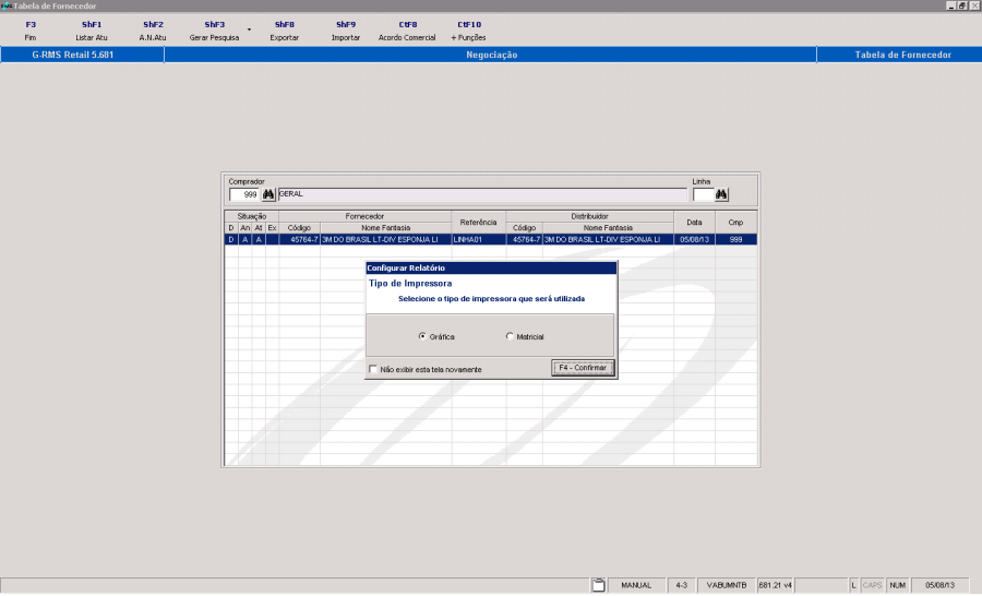Selecione na grade de tela a tabela de fornecedor que deseja importar.