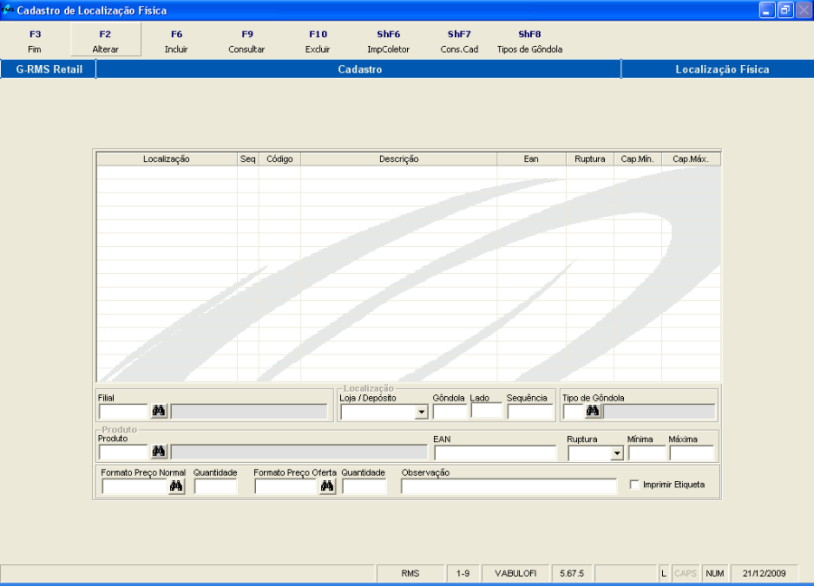 Mercadorias Cadastro Cadastros Complementares Localização Física Manutenção