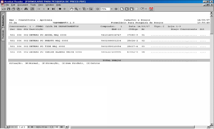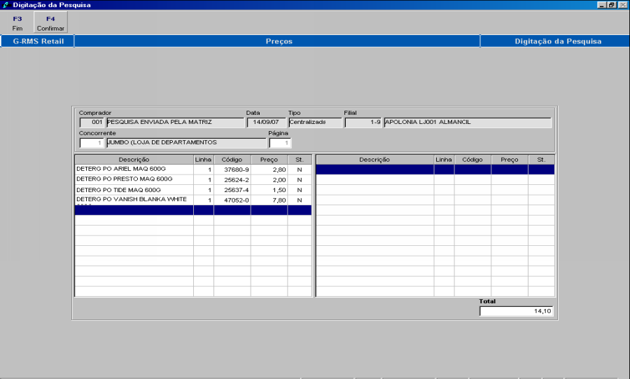 Observe que foi criada a região, as filiais participantes, conjugados os concorrentes e determinados os produtos participantes.