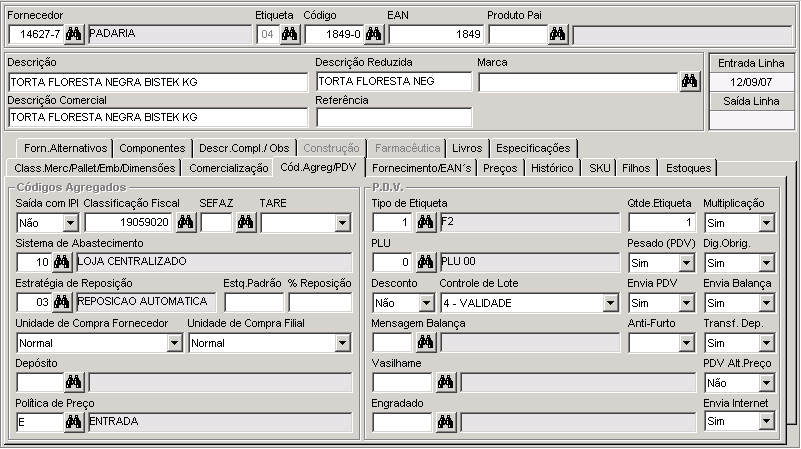 Cadastro ou Manutenção do Produto