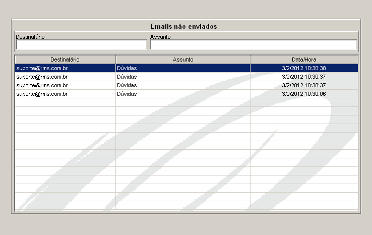 - A figura 2 (abaixo) exibe os e-mails não enviados, é possível realizar algumas operações com este e-mail.