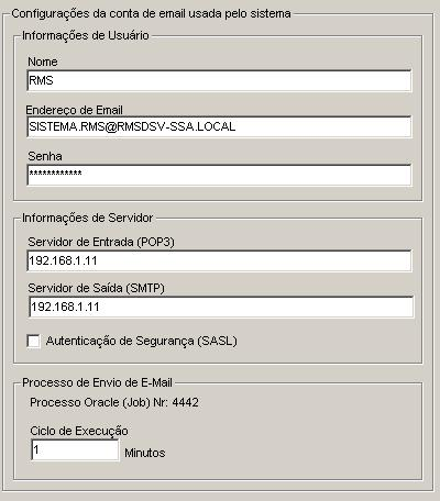 Configurar a rotina padrão de envio de e-mail, utilizada pelo sistema RMS Retail.
