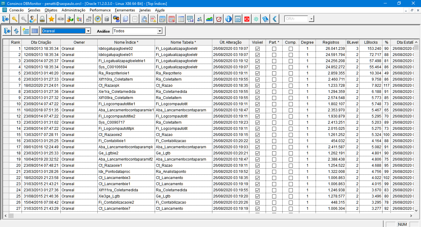 As evidências de utilização são baseadas em planos de execução em cache, portanto, deve-se levar em conta o fato da utilização eventual do índice.