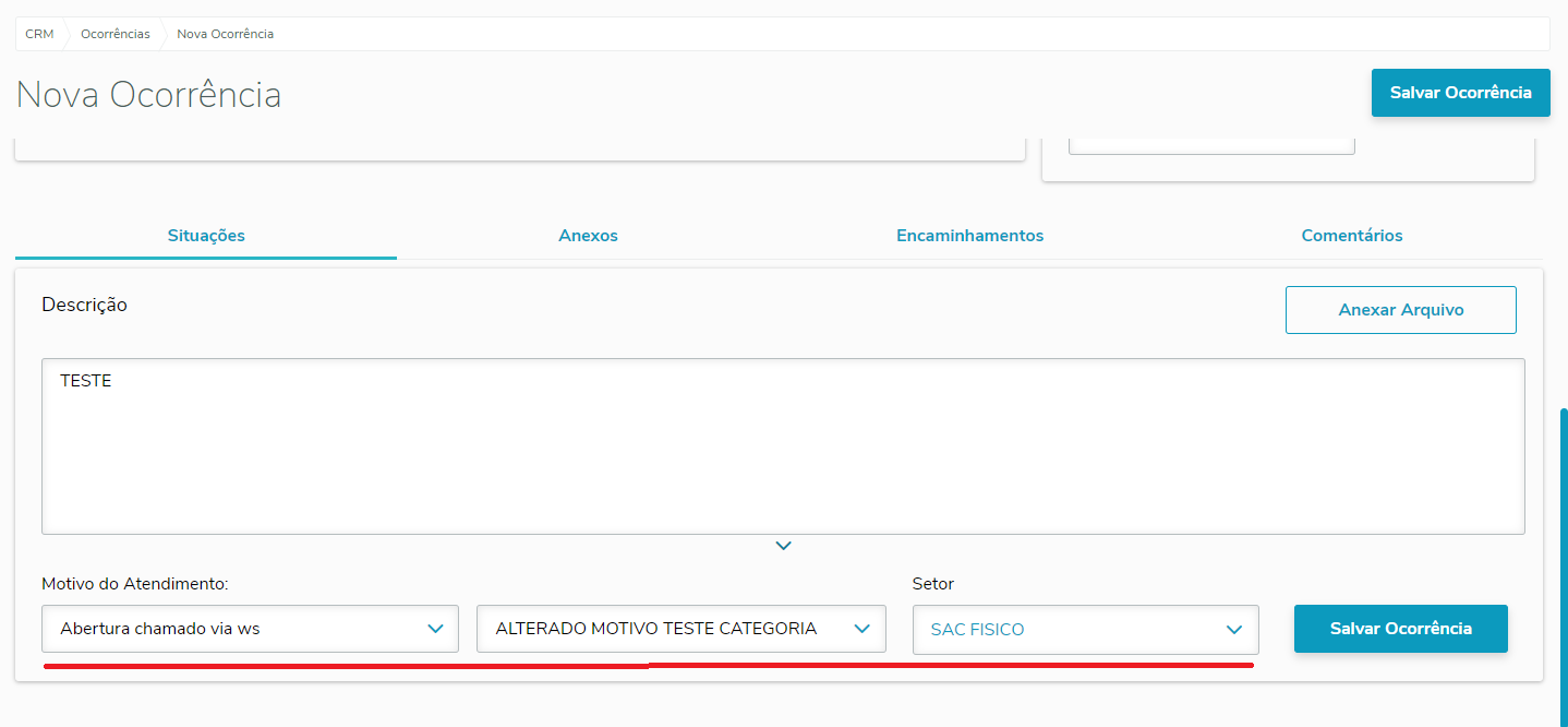 Abrir o F12 antes de tudo, criar um protocolo tipo "Cliente Particular", em destaque os campos citados acima, que devem ser devidamente informados (categoria, motivo, setor e canal de atendimento).