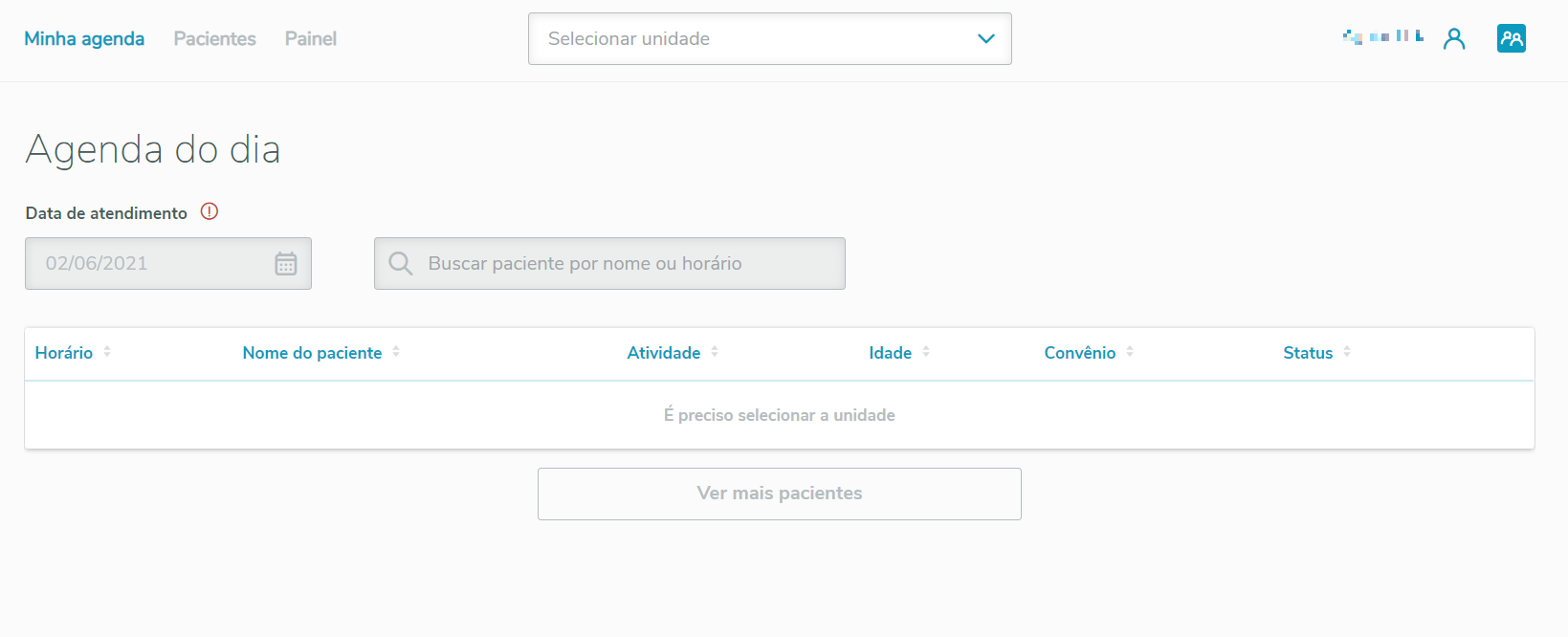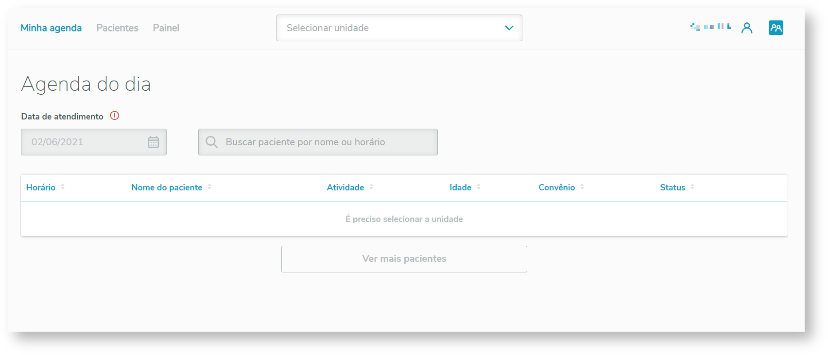 Após a seleção da unidade, escolha o dia a ser verificado (por padrão é sempre o dia atual).